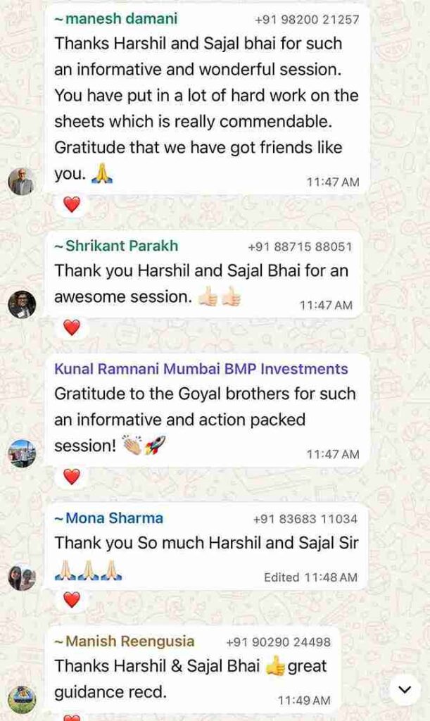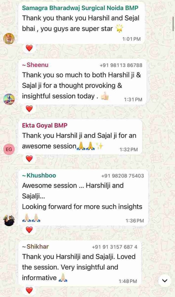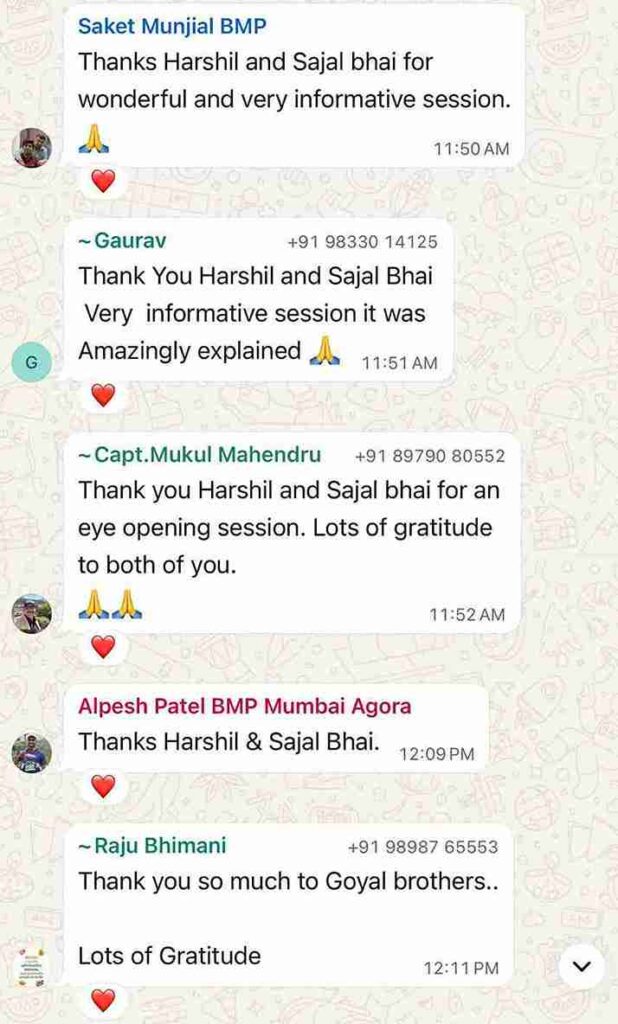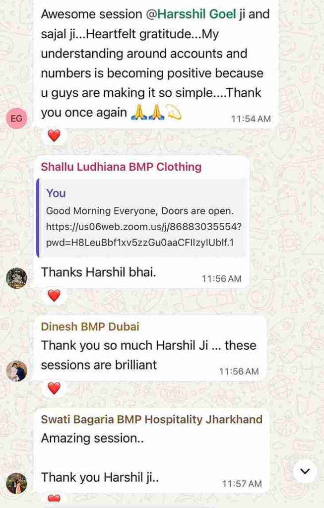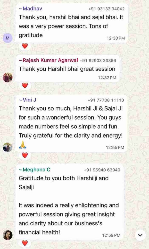 "Sajal Bhai, thank you so much for all the valuable insights you shared during FCM. I always used to struggle with understanding why there was profit in the books but not in the bank. Harshil Ji & Sajal Ji has given us the confidence to scale our business. The best part is that their vibes match with ours – they truly understand what we want. And honestly, that’s the best growth strategy one can ask for.